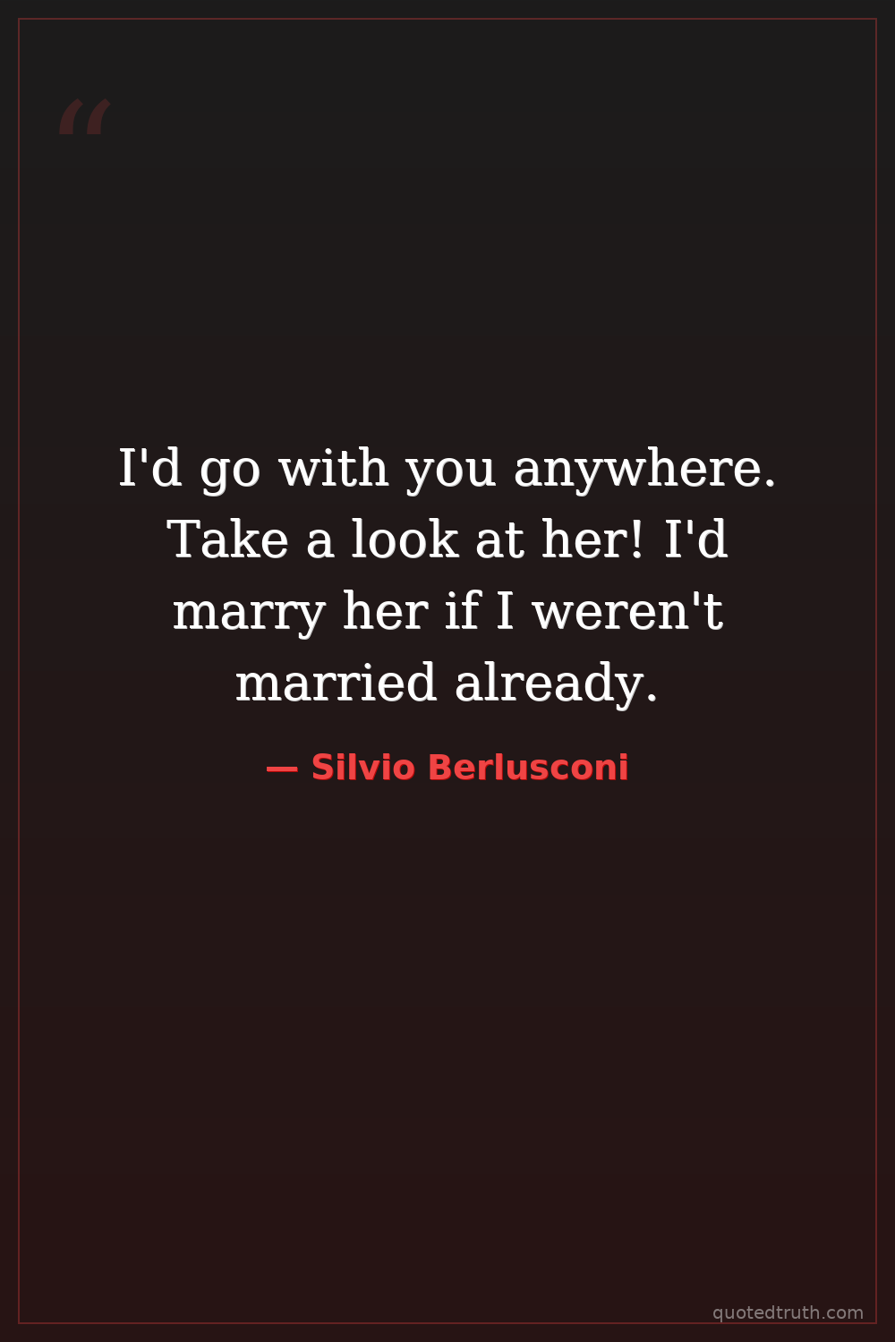 I'd go with you anywhere. Take a look at her! I'd marry her if I weren't married already.