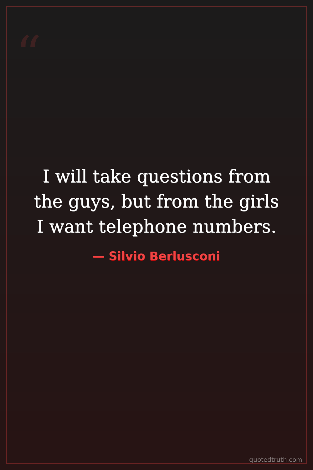 I will take questions from the guys, but from the girls I want telephone numbers.