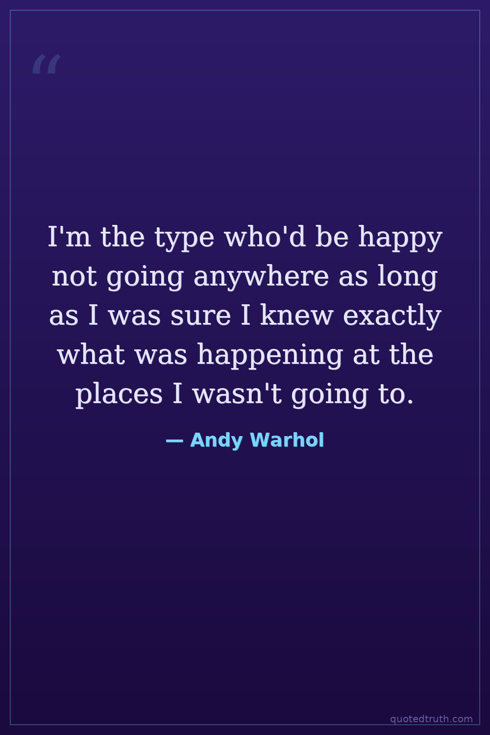 I'm the type who'd be happy not going anywhere as long as I was sure I knew exactly what was happening at the places I wasn't going to.
