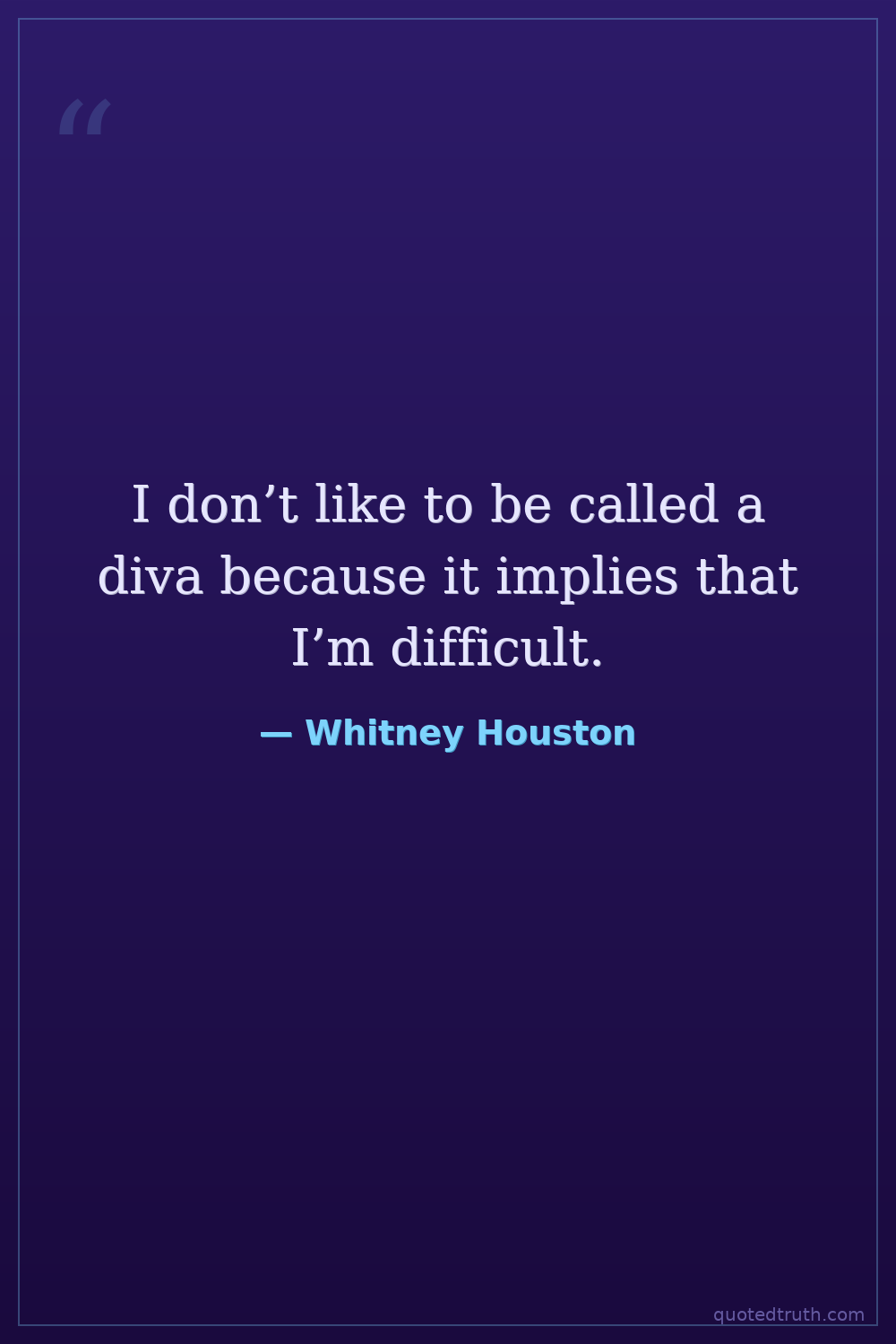 I don’t like to be called a diva because it implies that I’m difficult.
