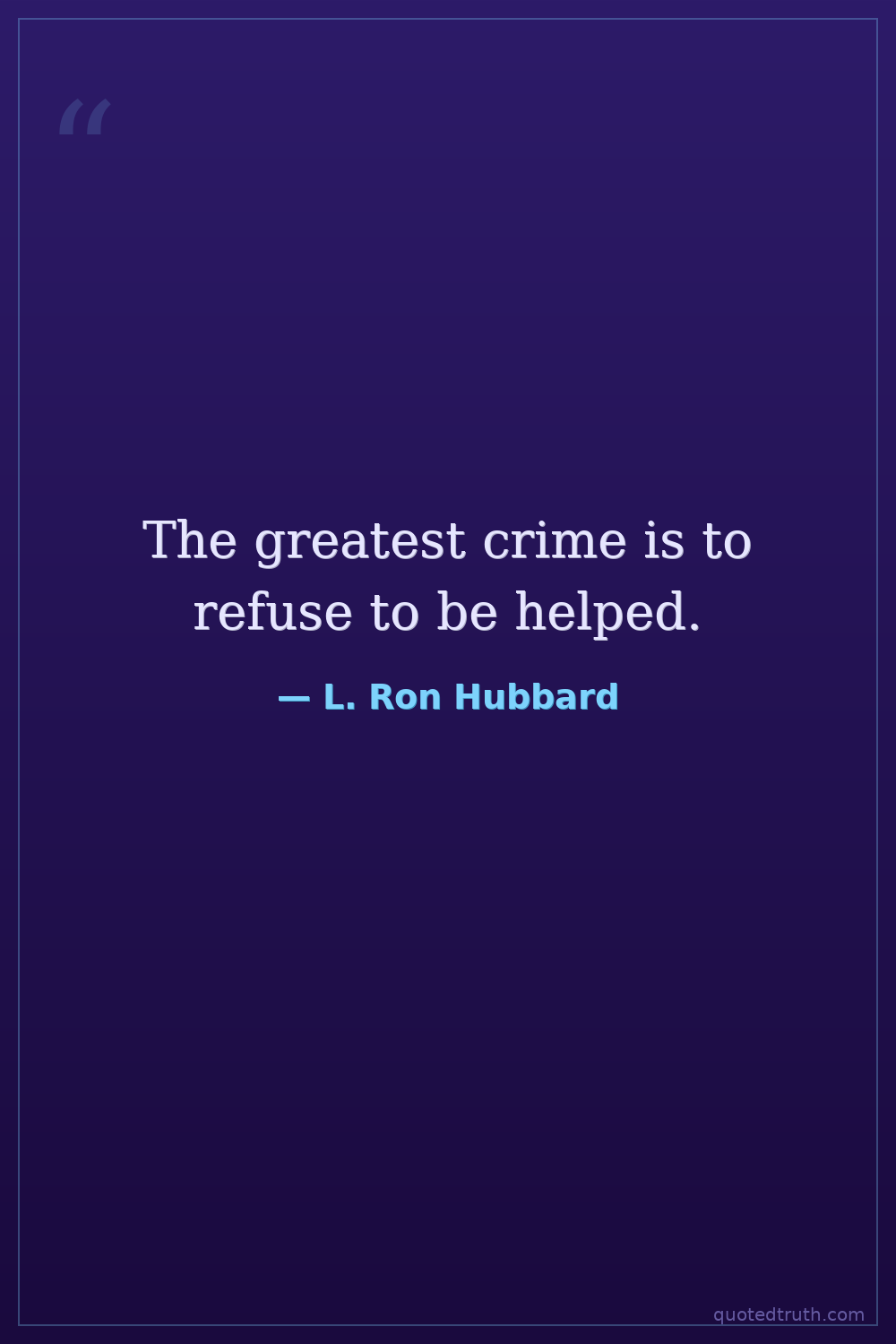 The greatest crime is to refuse to be helped.