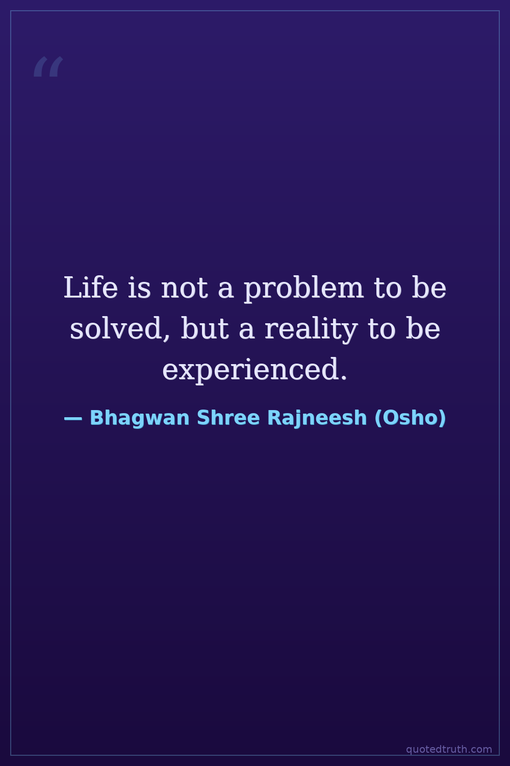 Life is not a problem to be solved, but a reality to be experienced.