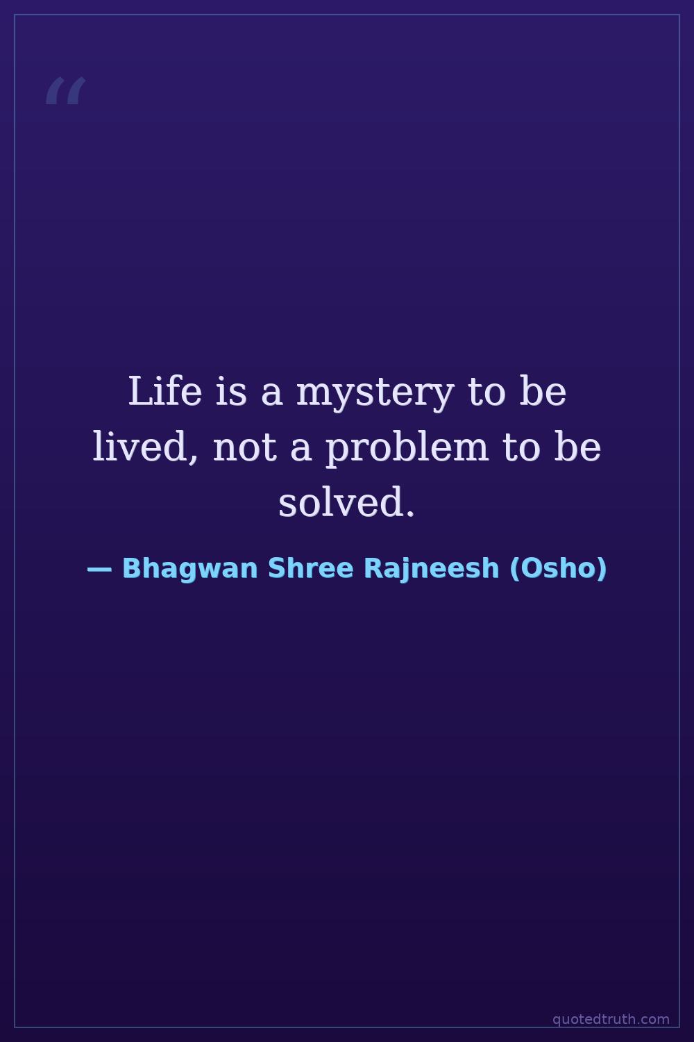 Life is a mystery to be lived, not a problem to be solved.