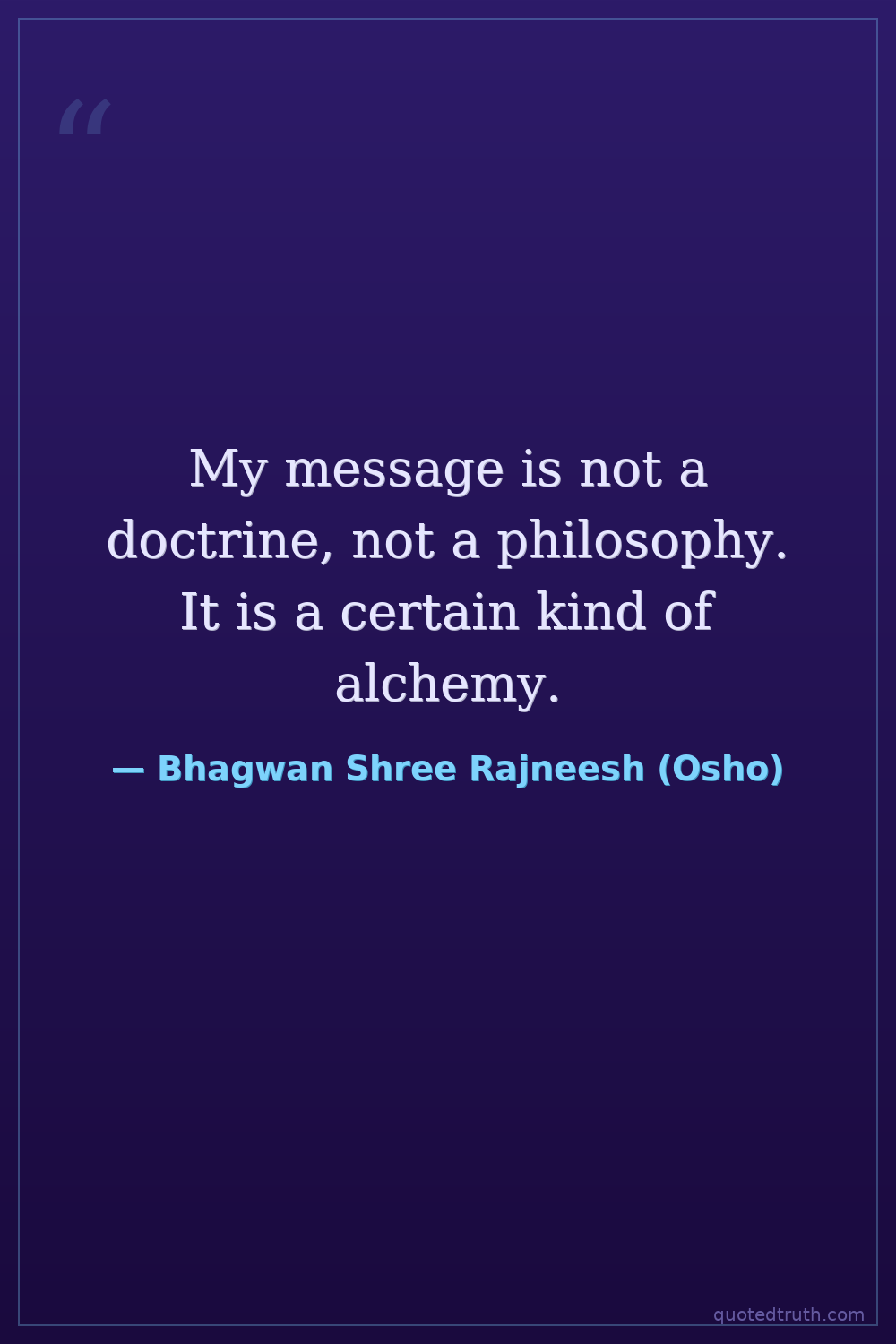 My message is not a doctrine, not a philosophy. It is a certain kind of alchemy.