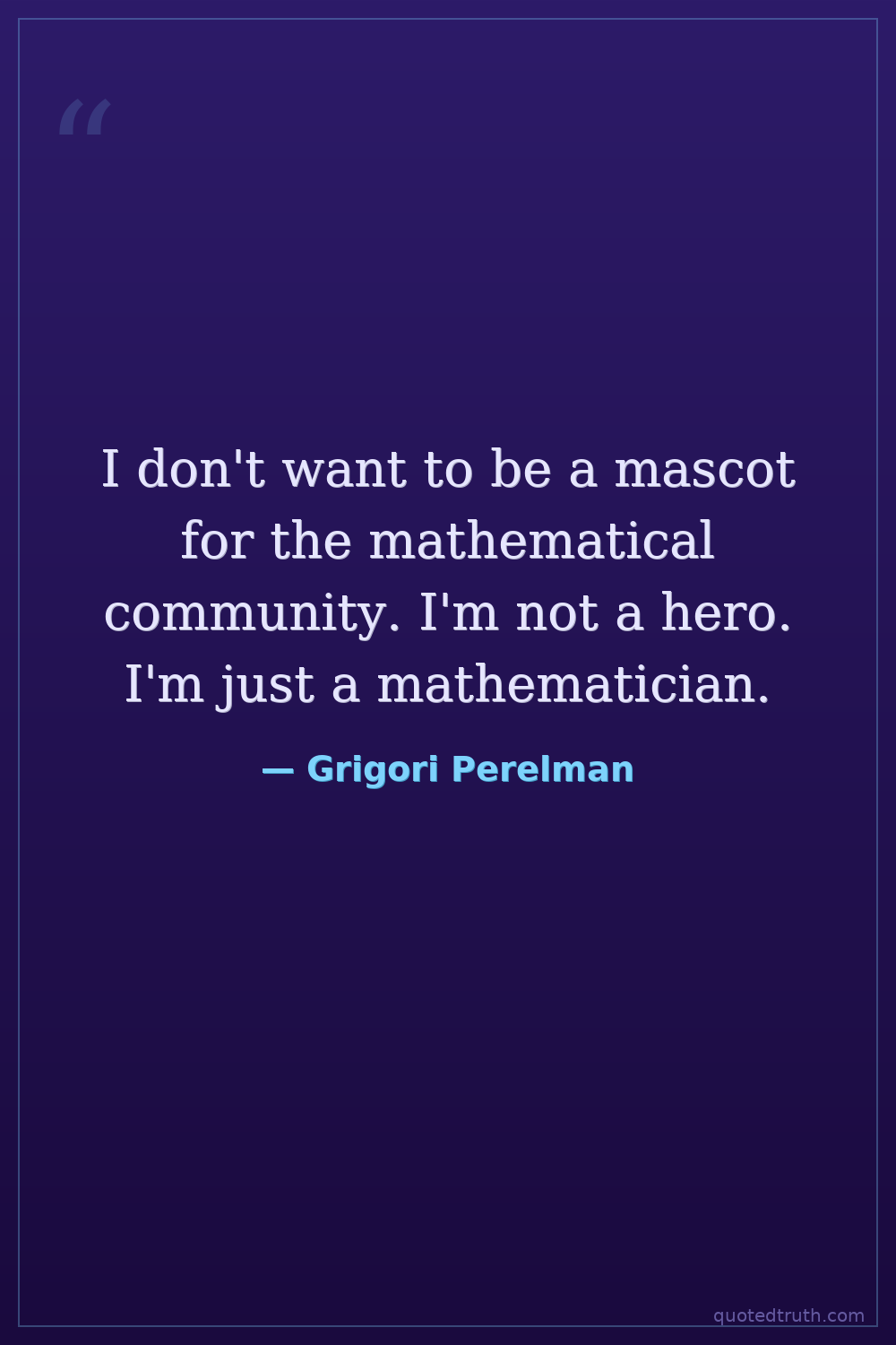 I don't want to be a mascot for the mathematical community. I'm not a hero. I'm just a mathematician.