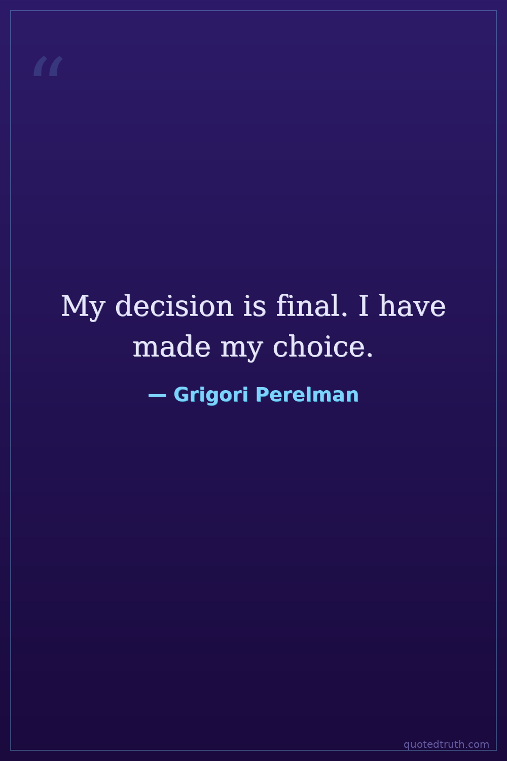 My decision is final. I have made my choice.