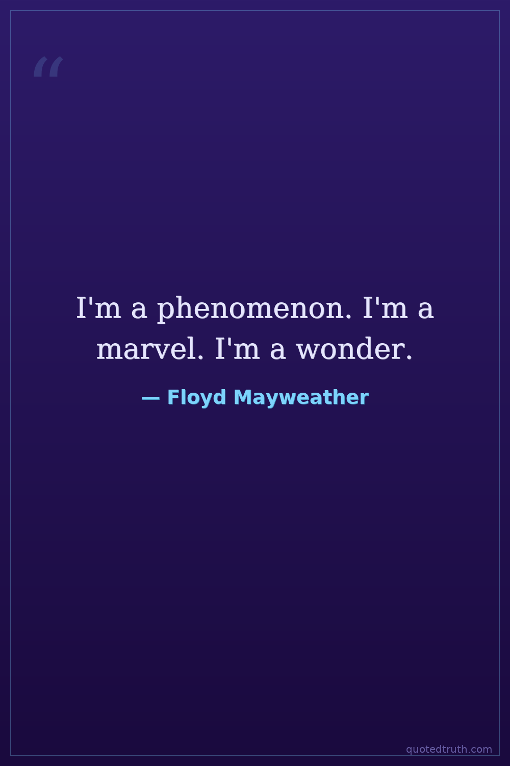 I'm a phenomenon. I'm a marvel. I'm a wonder.