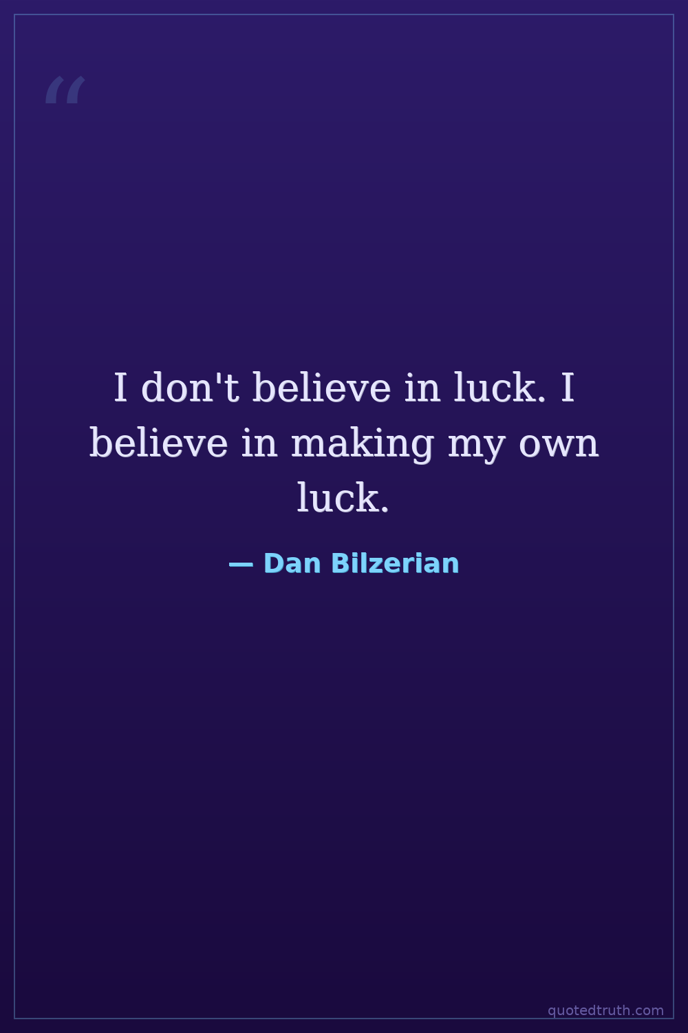 I don't believe in luck. I believe in making my own luck.