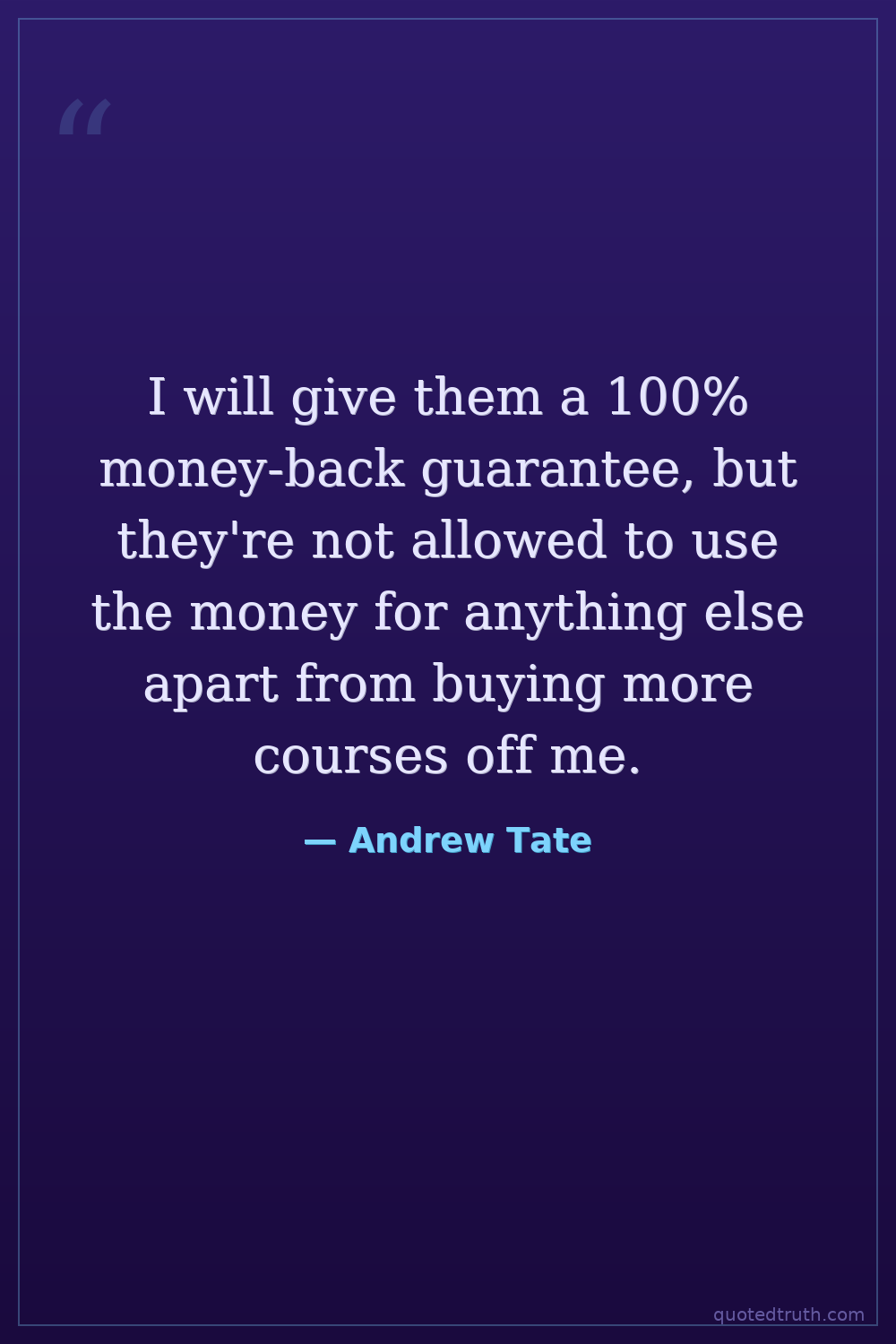 I will give them a 100% money-back guarantee, but they're not allowed to use the money for anything else apart from buying more courses off me.