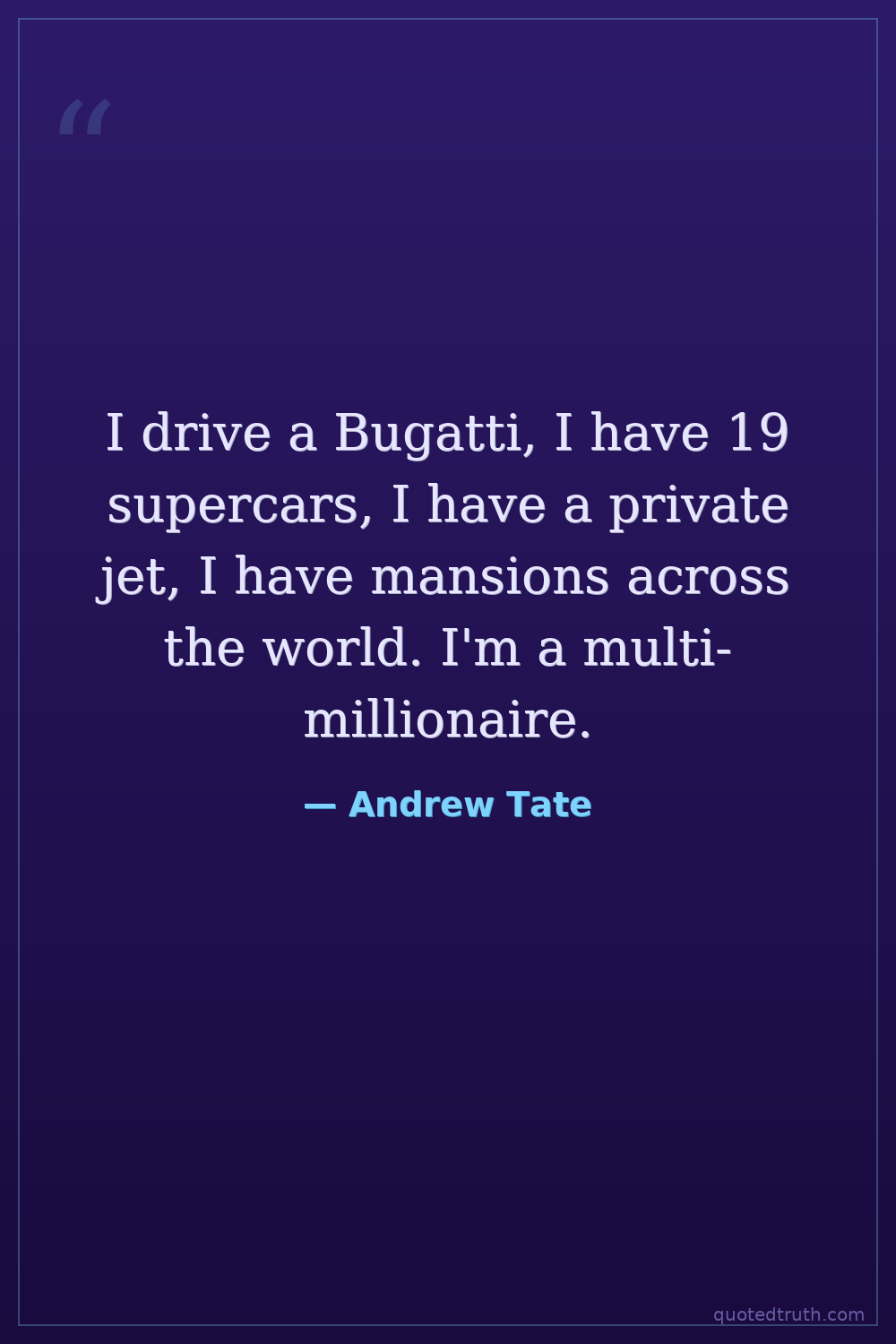 I drive a Bugatti, I have 19 supercars, I have a private jet, I have mansions across the world. I'm a multi-millionaire.