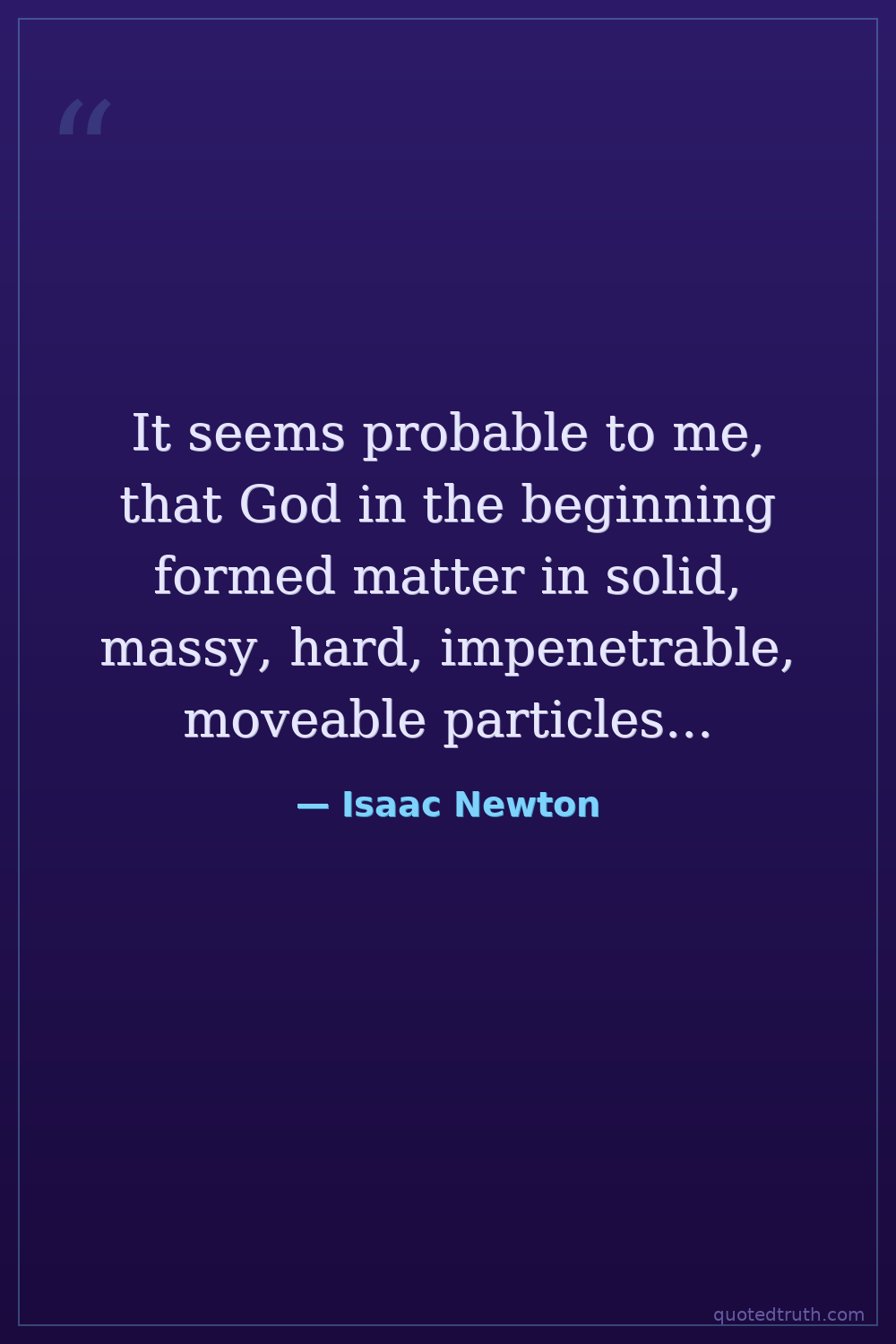 It seems probable to me, that God in the beginning formed matter in solid, massy, hard, impenetrable, moveable particles...