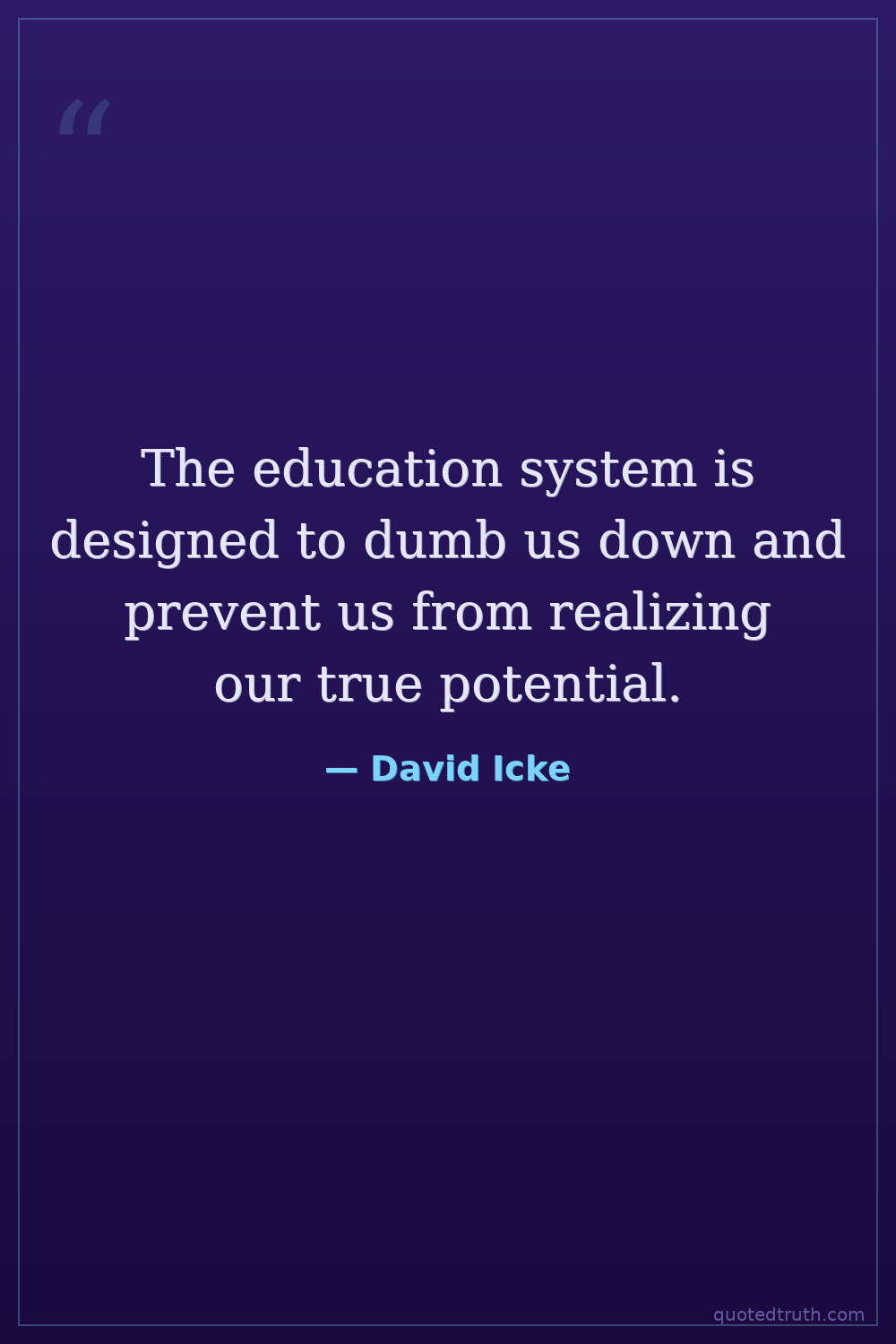 The education system is designed to dumb us down and prevent us from realizing our true potential.