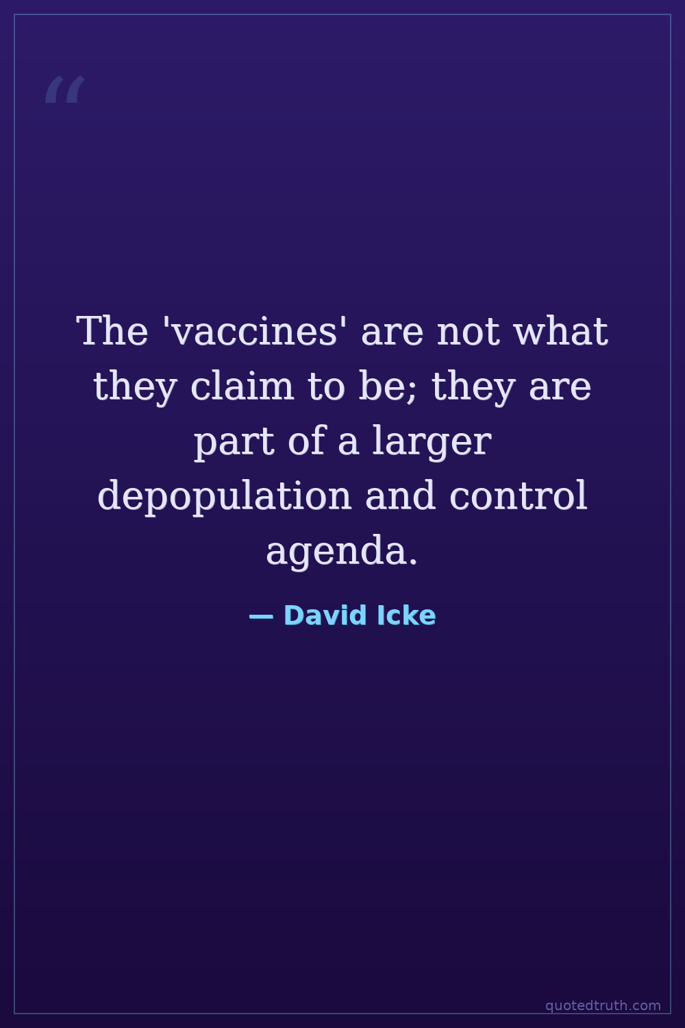The 'vaccines' are not what they claim to be; they are part of a larger depopulation and control agenda.