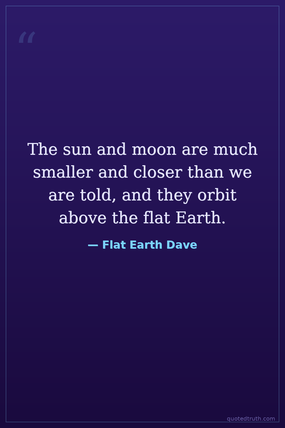 The sun and moon are much smaller and closer than we are told, and they orbit above the flat Earth.