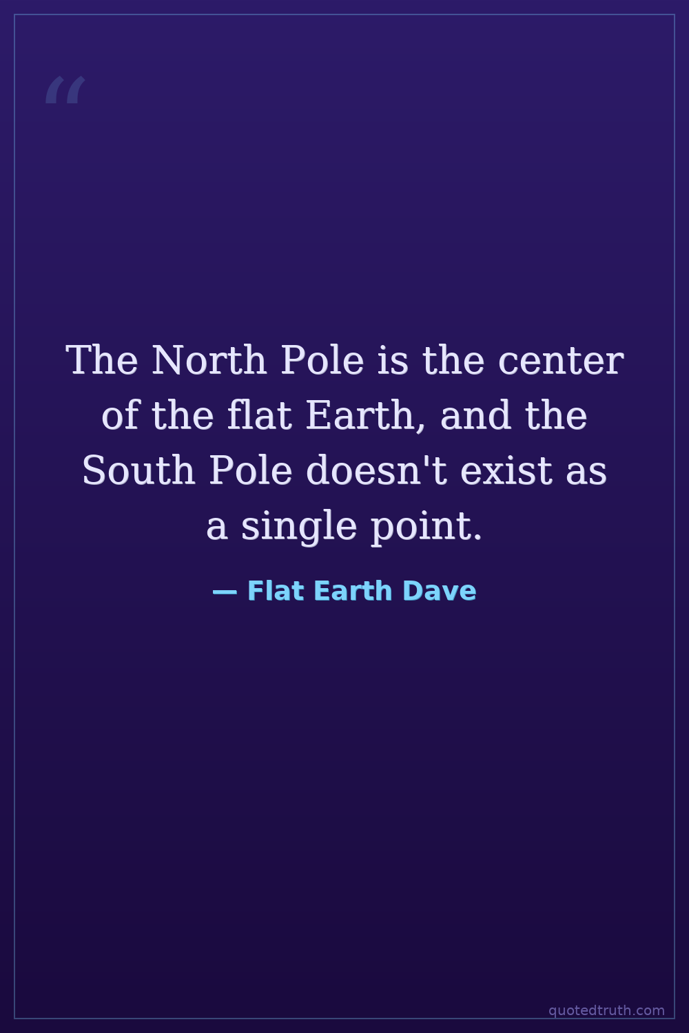 The North Pole is the center of the flat Earth, and the South Pole doesn't exist as a single point.