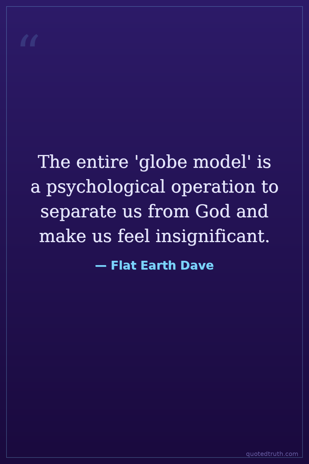 The entire 'globe model' is a psychological operation to separate us from God and make us feel insignificant.