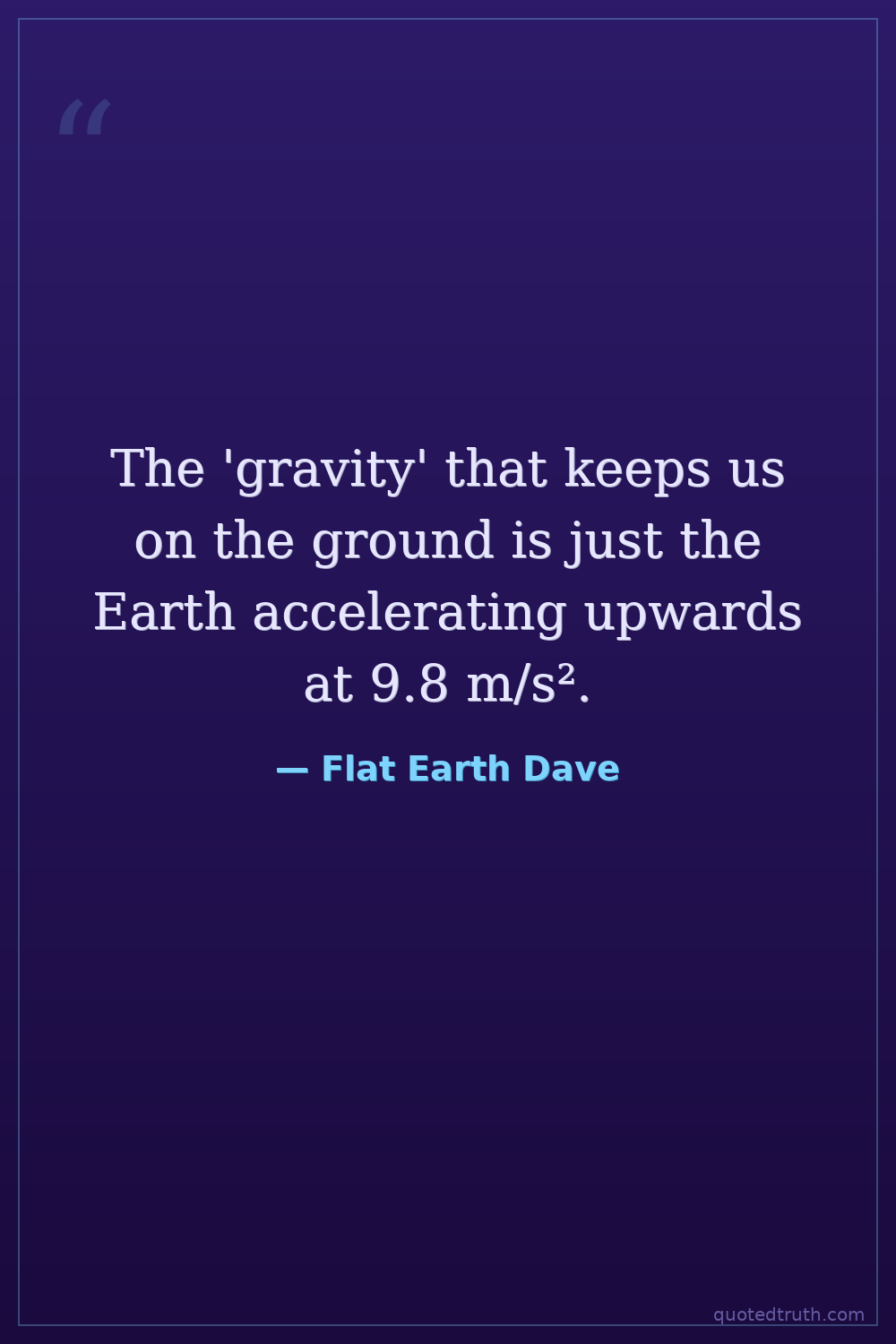 "Gravity is a hoax. Things fall because of density and buoyancy, not some mythical force pulling us down."