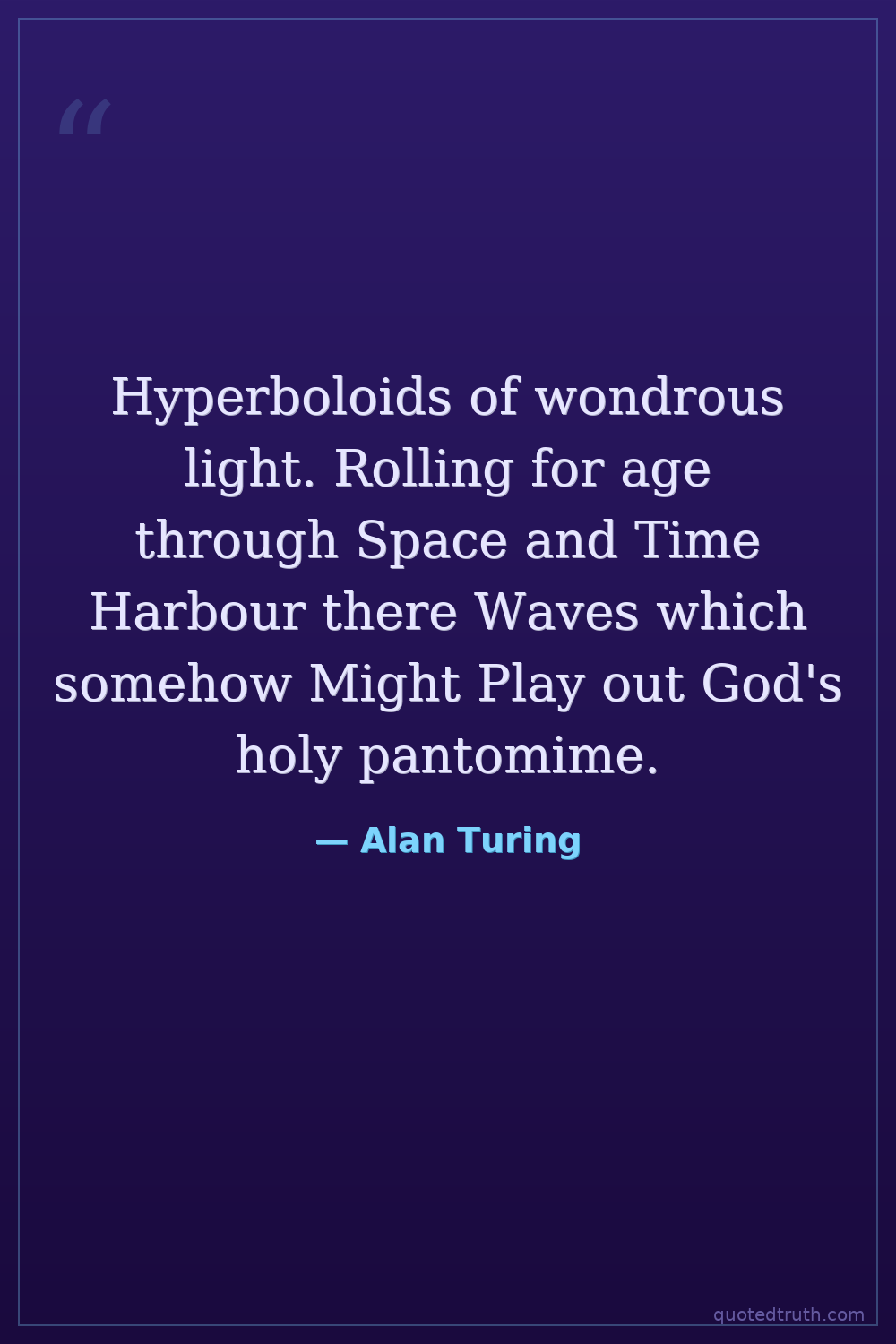 Hyperboloids of wondrous light. Rolling for age through Space and Time Harbour there Waves which somehow Might Play out God's holy pantomime.