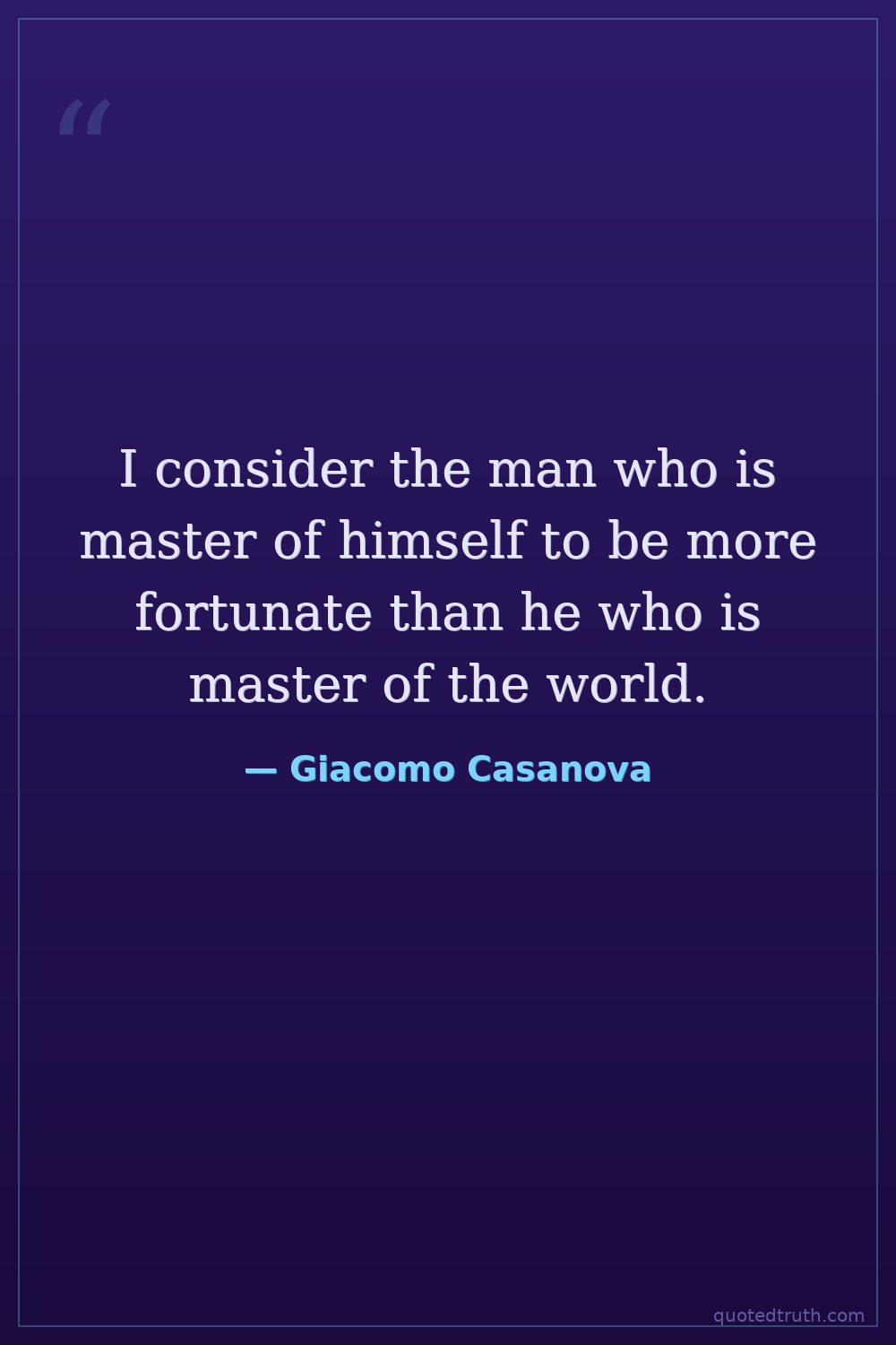 I consider the man who is master of himself to be more fortunate than he who is master of the world.
