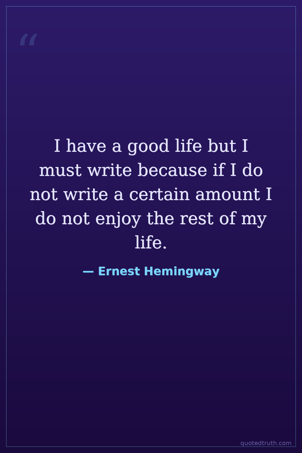 I have a good life but I must write because if I do not write a certain amount I do not enjoy the rest of my life.