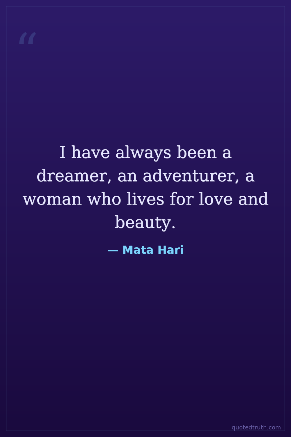 I have always been a dreamer, an adventurer, a woman who lives for love and beauty.