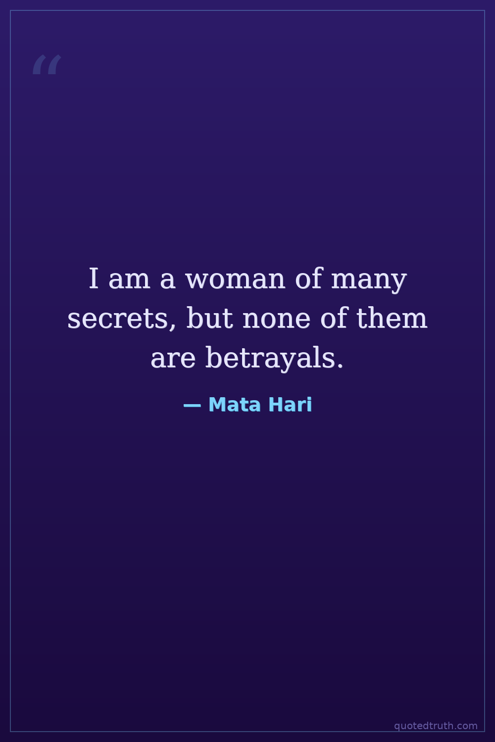 I am a woman of many secrets, but none of them are betrayals.