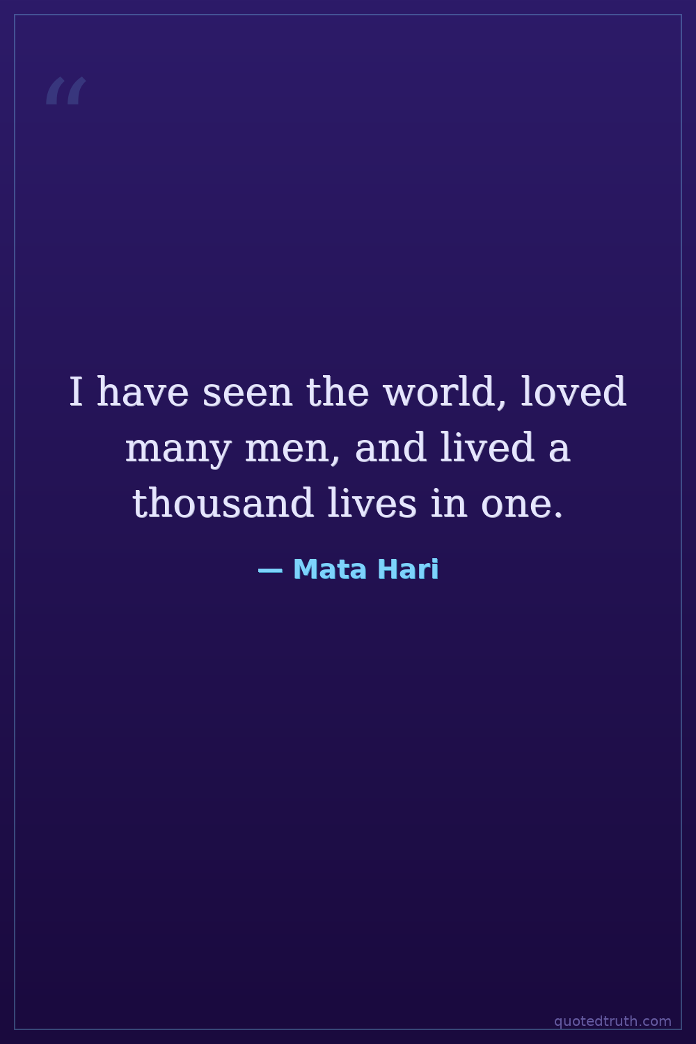 I have seen the world, loved many men, and lived a thousand lives in one.