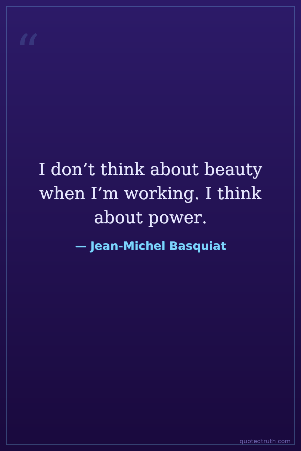 I don’t think about beauty when I’m working. I think about power.