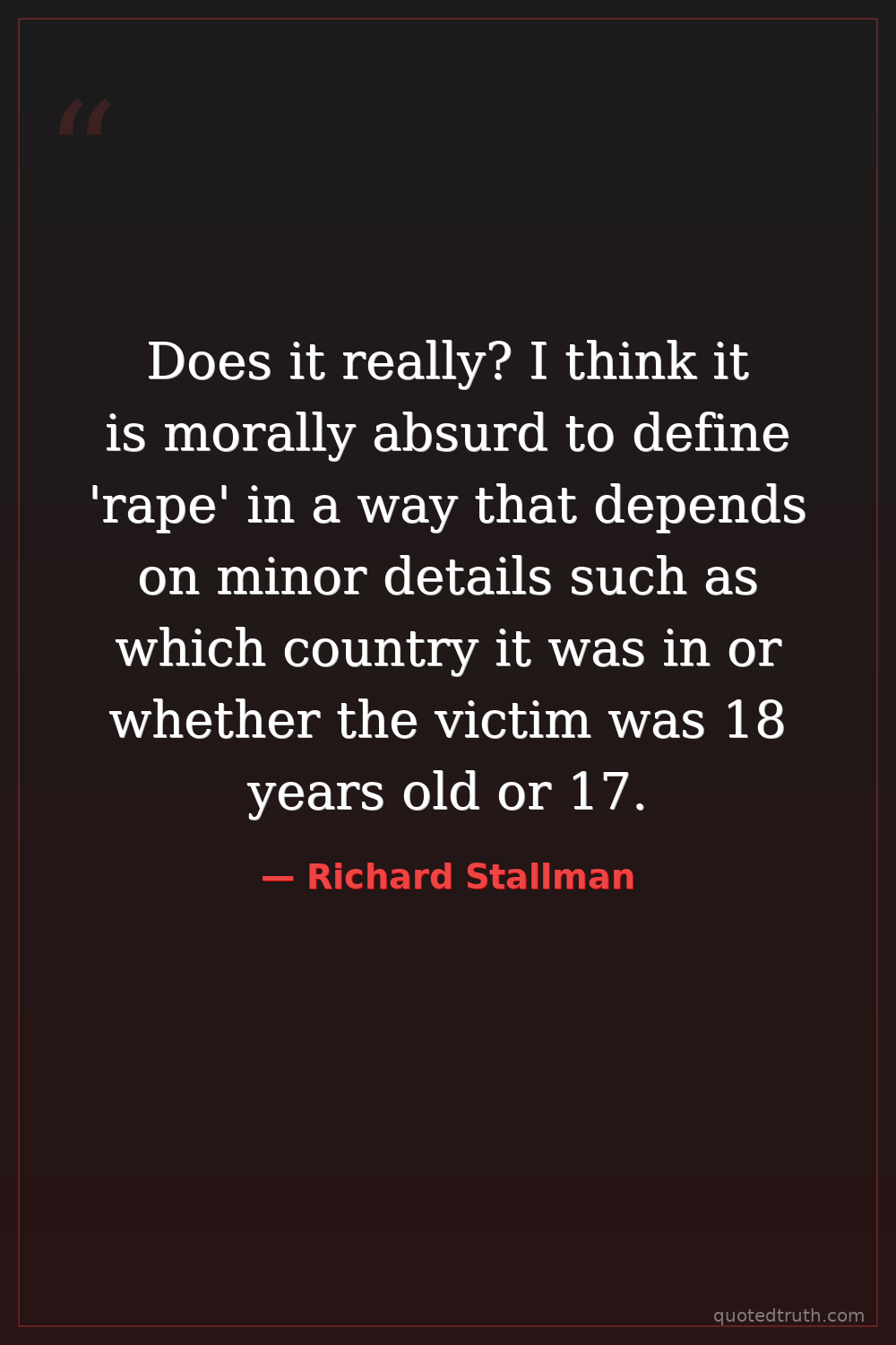 Does it really? I think it is morally absurd to define 'rape' in a way that depends on minor details such as which country it was in or whether the victim was 18 years old or 17.