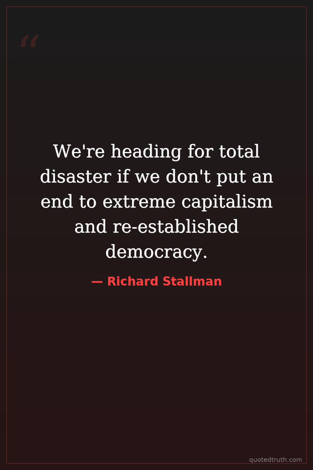 We're heading for total disaster if we don't put an end to extreme capitalism and re-established democracy.