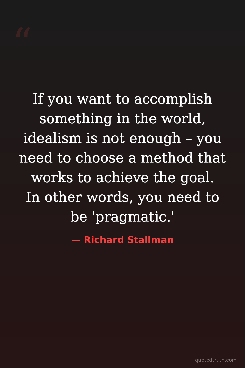 If you want to accomplish something in the world, idealism is not enough – you need to choose a method that works to achieve the goal. In other words, you need to be 'pragmatic.'