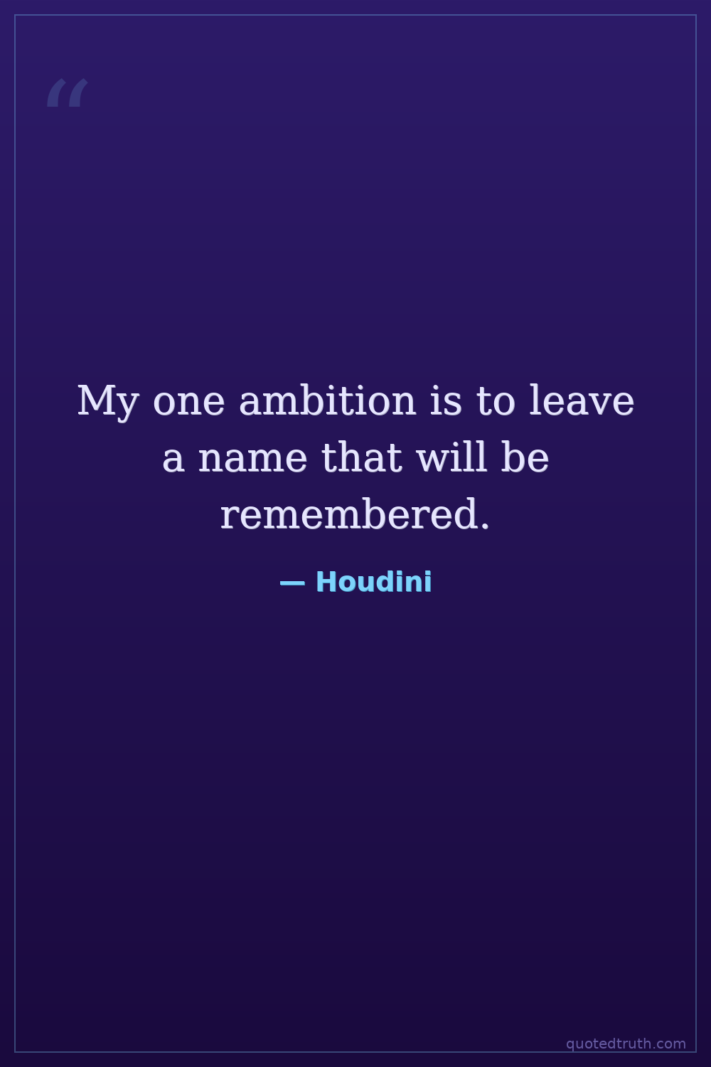 My one ambition is to leave a name that will be remembered.