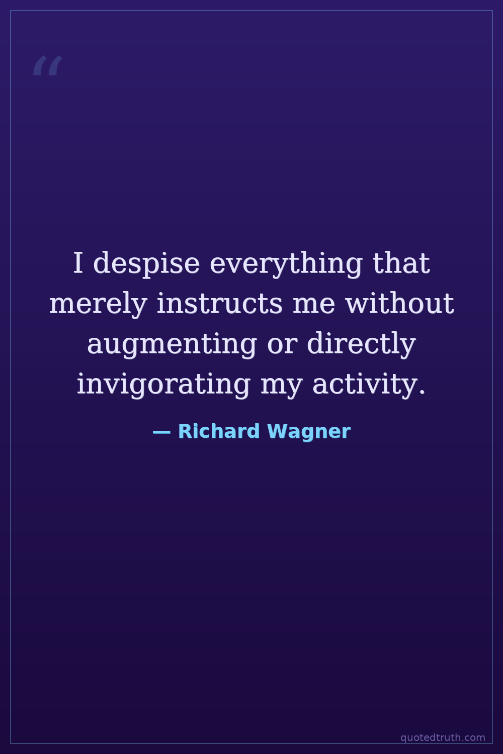 I despise everything that merely instructs me without augmenting or directly invigorating my activity.
