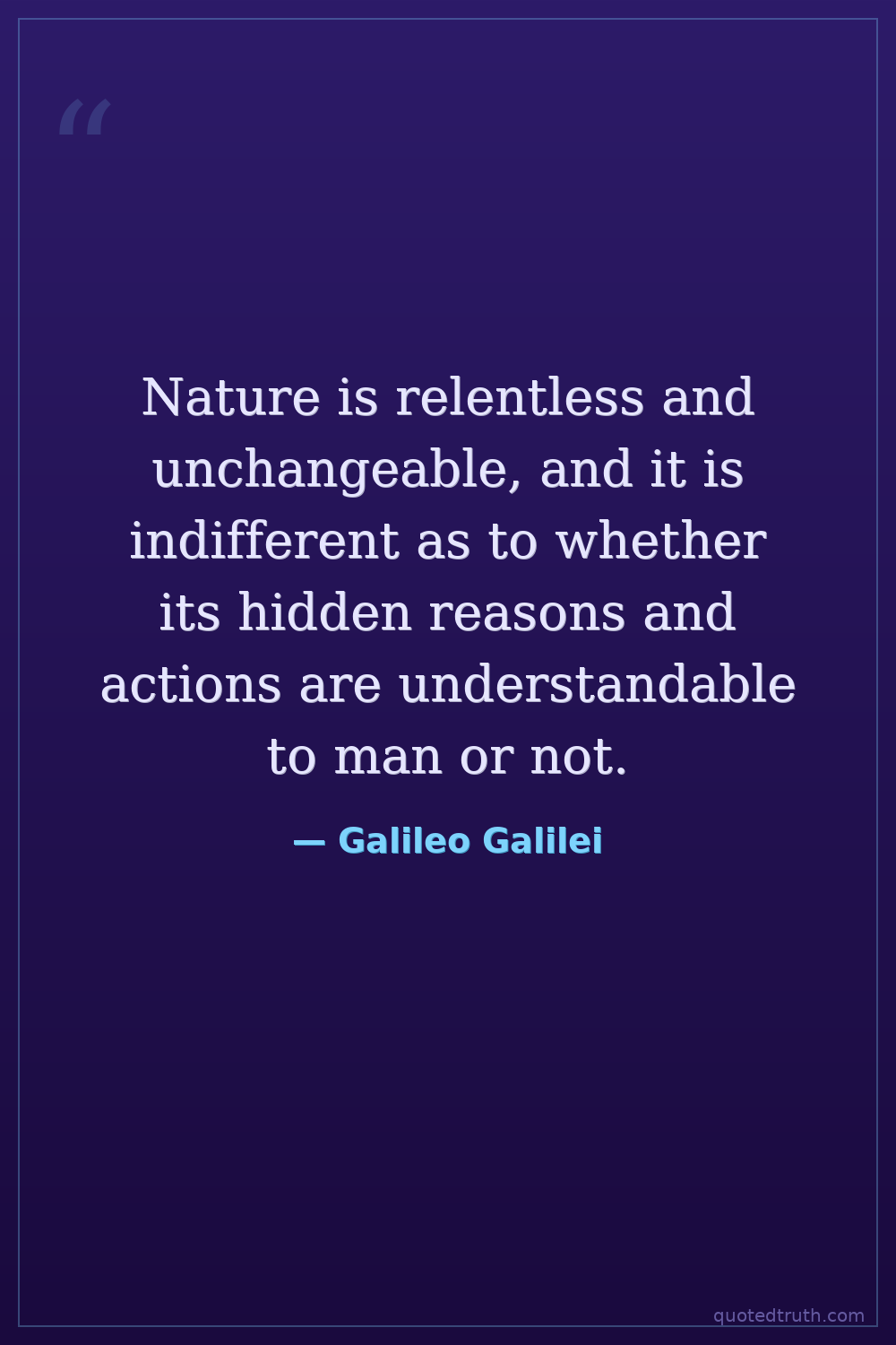 Nature is relentless and unchangeable, and it is indifferent as to whether its hidden reasons and actions are understandable to man or not.
