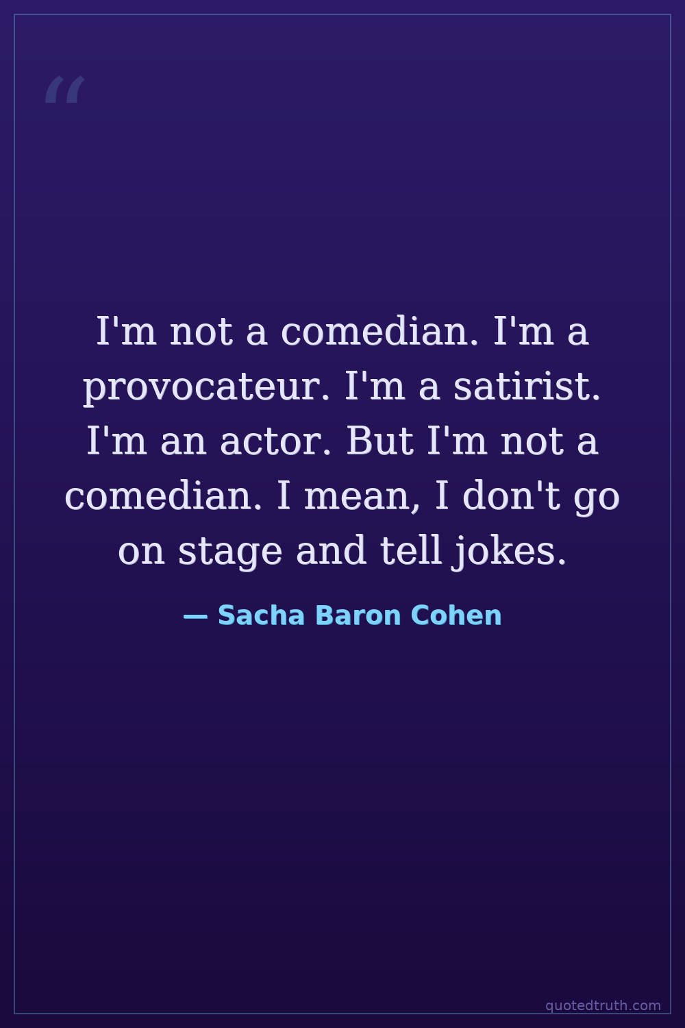 I'm not a comedian. I'm a provocateur. I'm a satirist. I'm an actor. But I'm not a comedian. I mean, I don't go on stage and tell jokes.