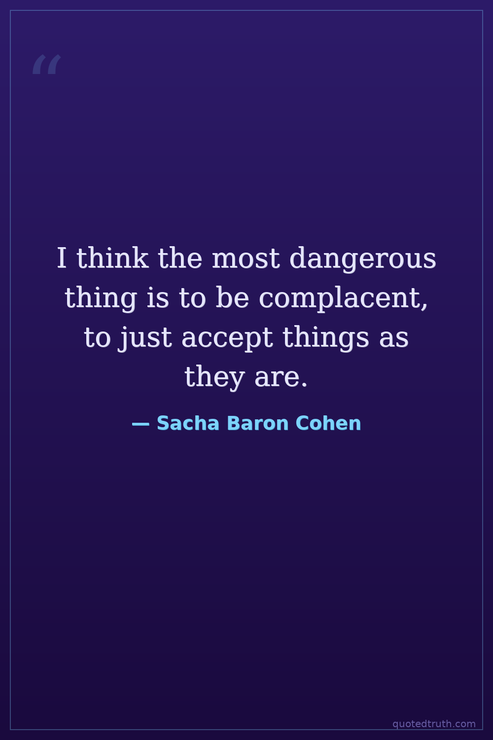 I think the most dangerous thing is to be complacent, to just accept things as they are.