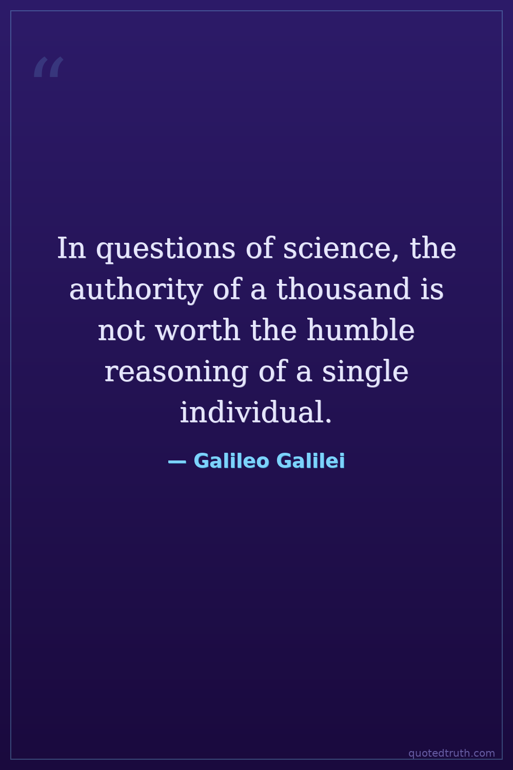 In questions of science, the authority of a thousand is not worth the humble reasoning of a single individual.