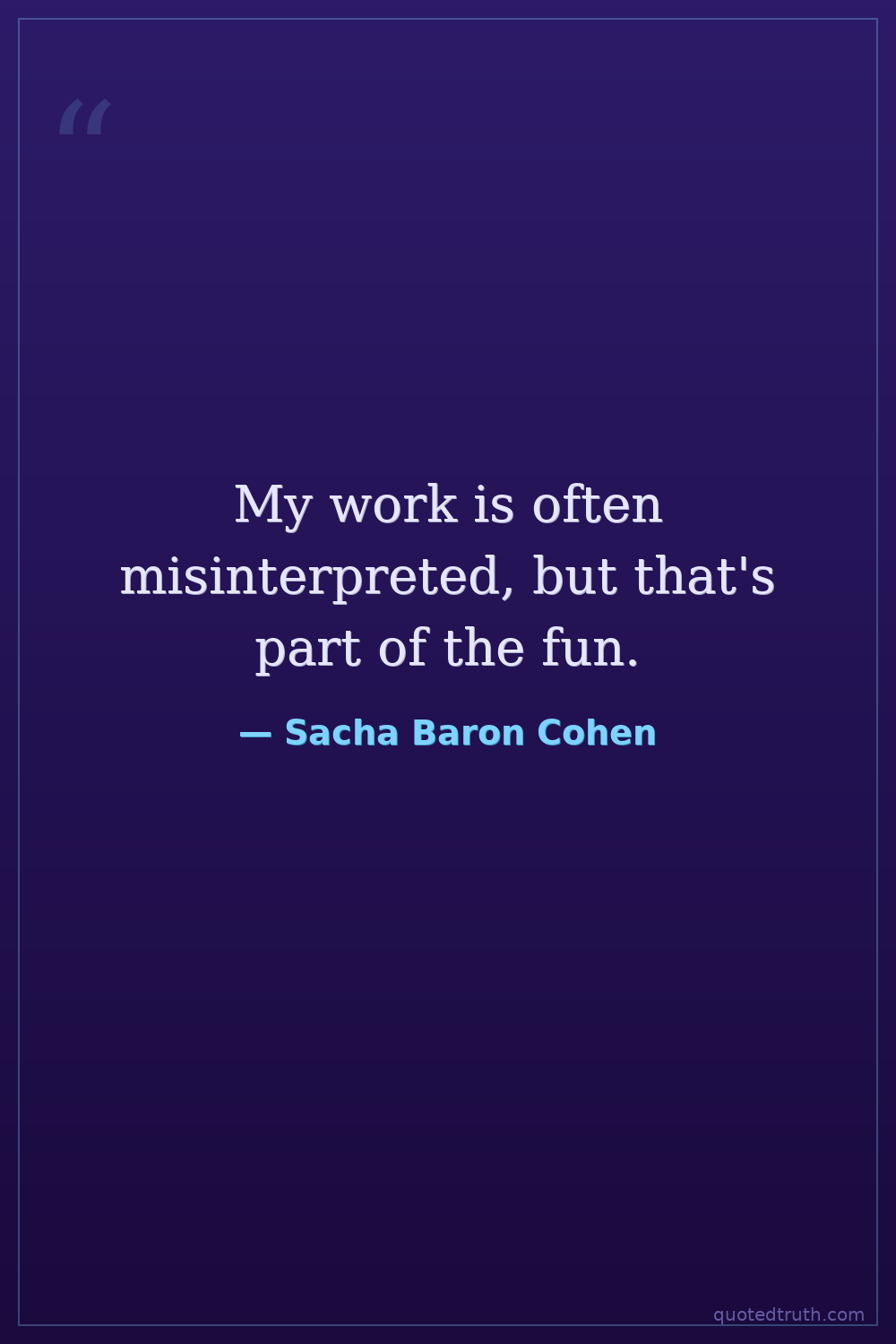 My work is often misinterpreted, but that's part of the fun.