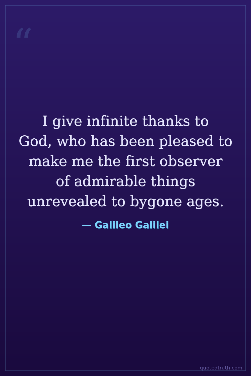 I give infinite thanks to God, who has been pleased to make me the first observer of admirable things unrevealed to bygone ages.