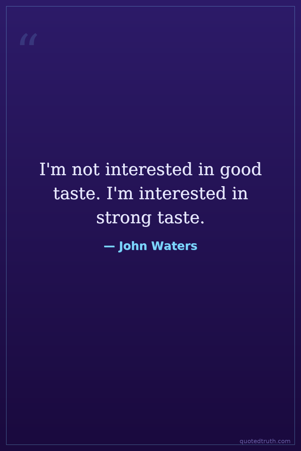 I'm not interested in good taste. I'm interested in strong taste.