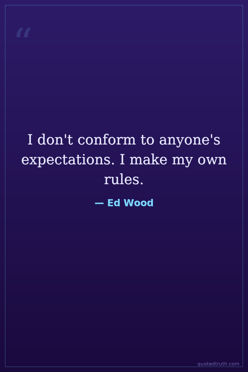 I don't conform to anyone's expectations. I make my own rules.