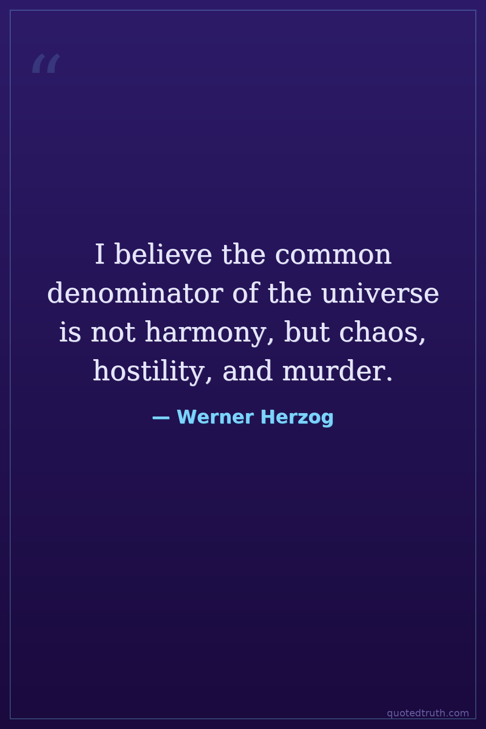 I believe the common denominator of the universe is not harmony, but chaos, hostility, and murder.