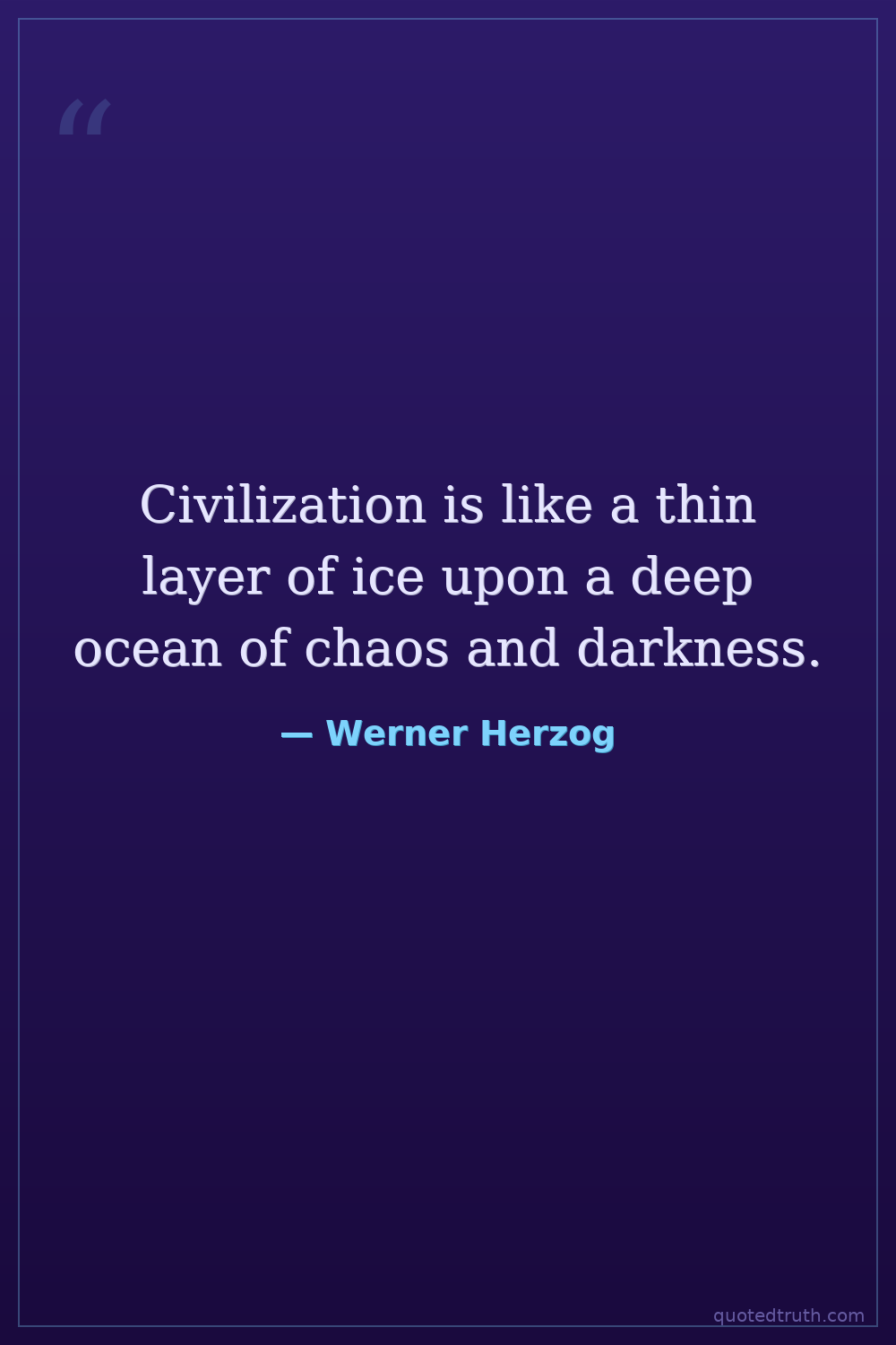 Civilization is like a thin layer of ice upon a deep ocean of chaos and darkness.