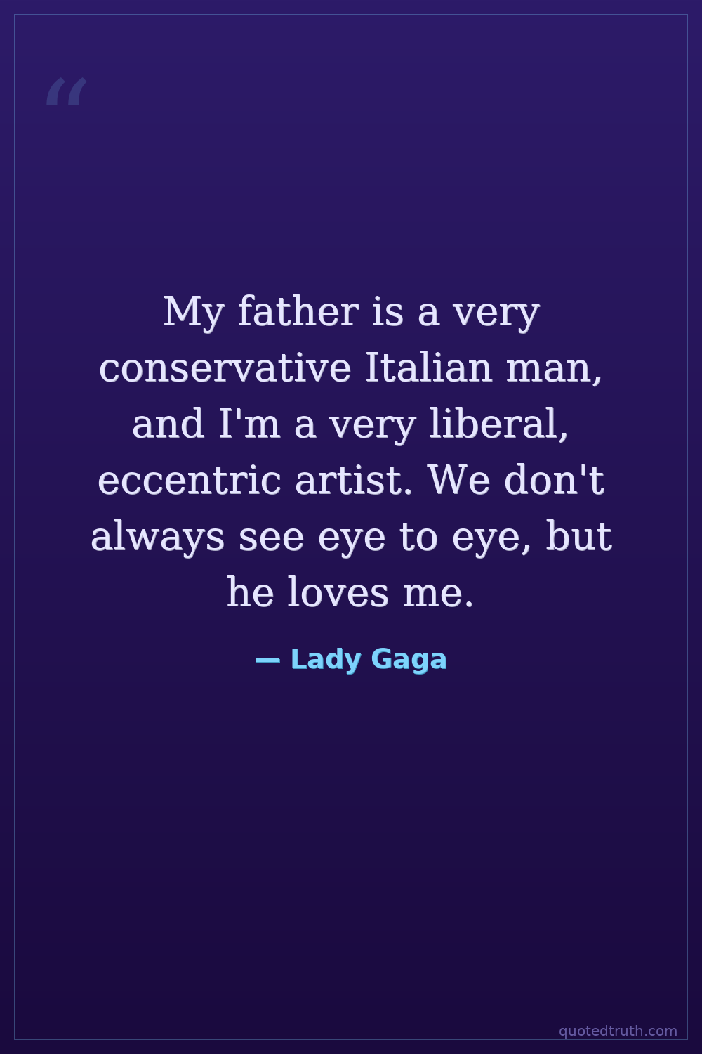 My father is a very conservative Italian man, and I'm a very liberal, eccentric artist. We don't always see eye to eye, but he loves me.