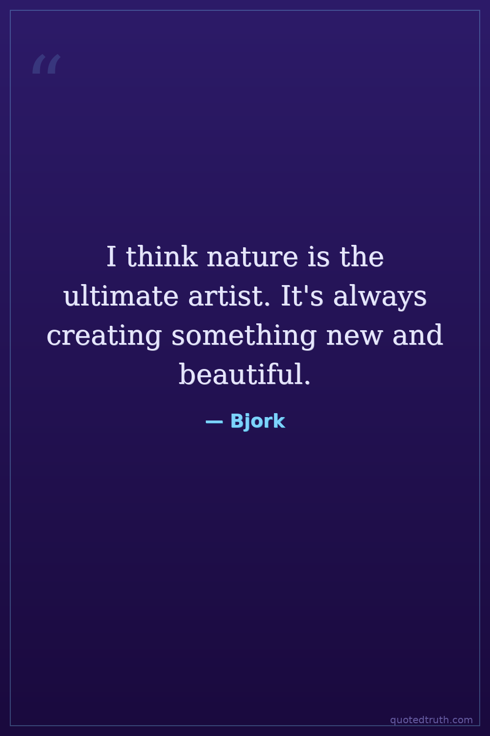 I think nature is the ultimate artist. It's always creating something new and beautiful.