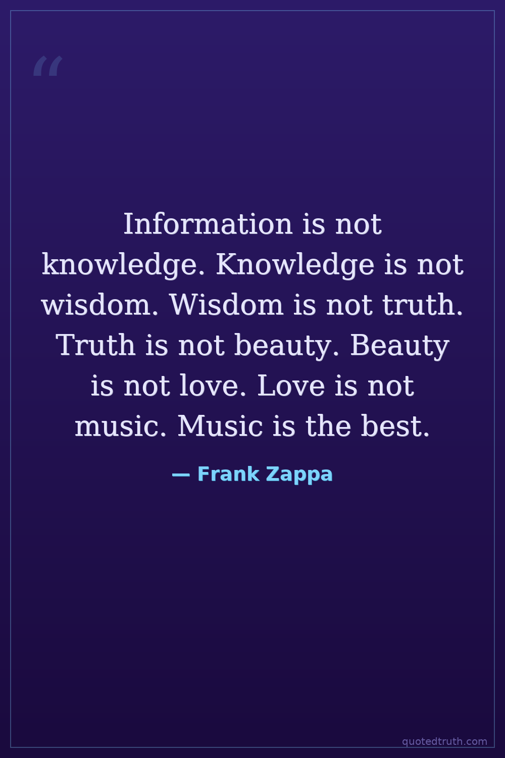 Information is not knowledge. Knowledge is not wisdom. Wisdom is not truth. Truth is not beauty. Beauty is not love. Love is not music. Music is the best.