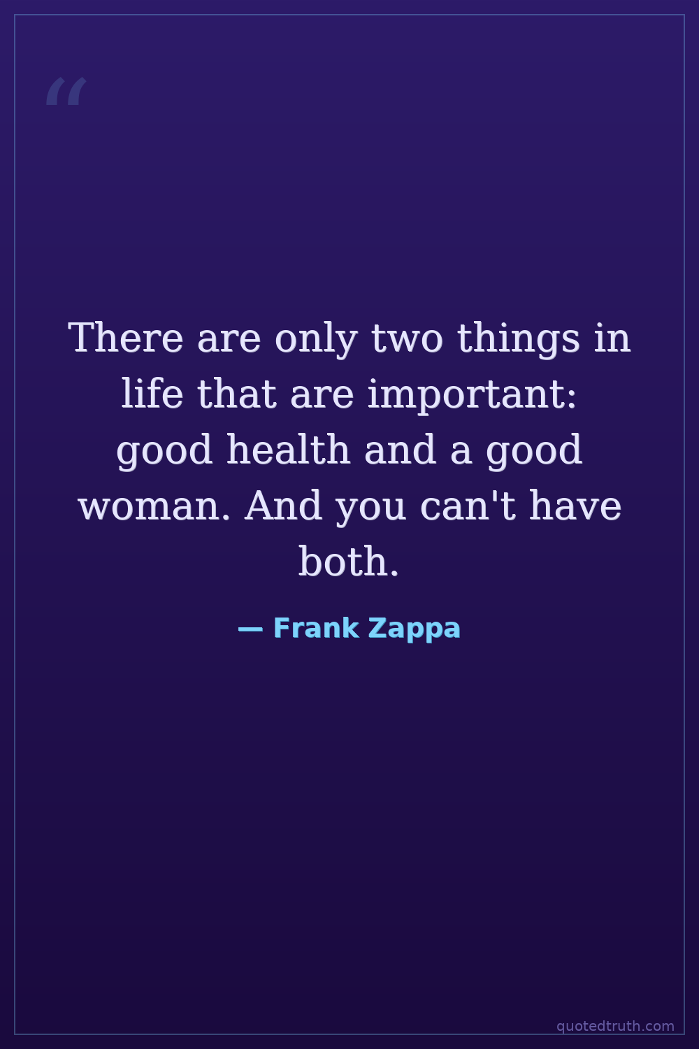 There are only two things in life that are important: good health and a good woman. And you can't have both.