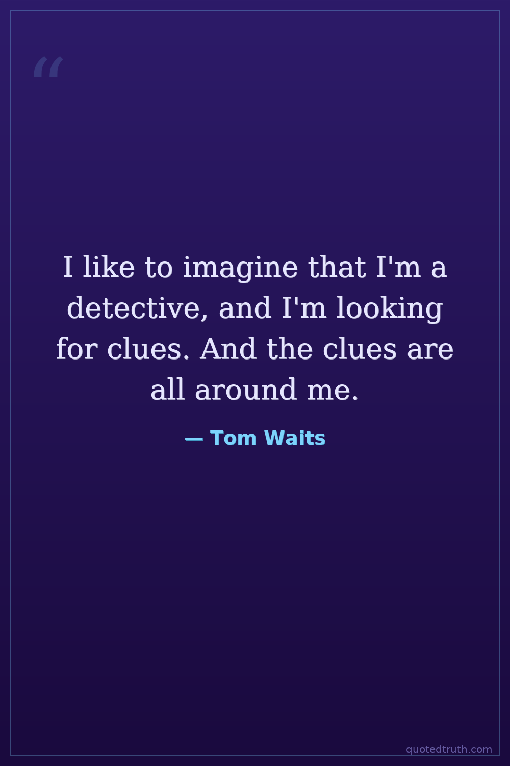 I like to imagine that I'm a detective, and I'm looking for clues. And the clues are all around me.