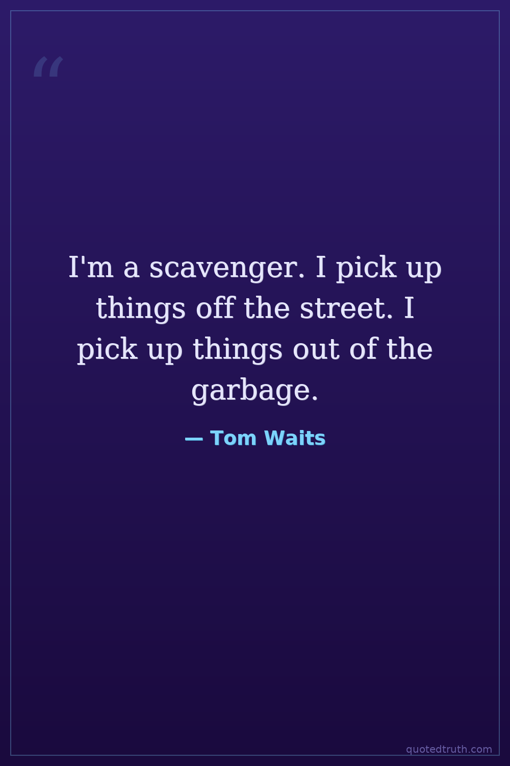 I'm a scavenger. I pick up things off the street. I pick up things out of the garbage.