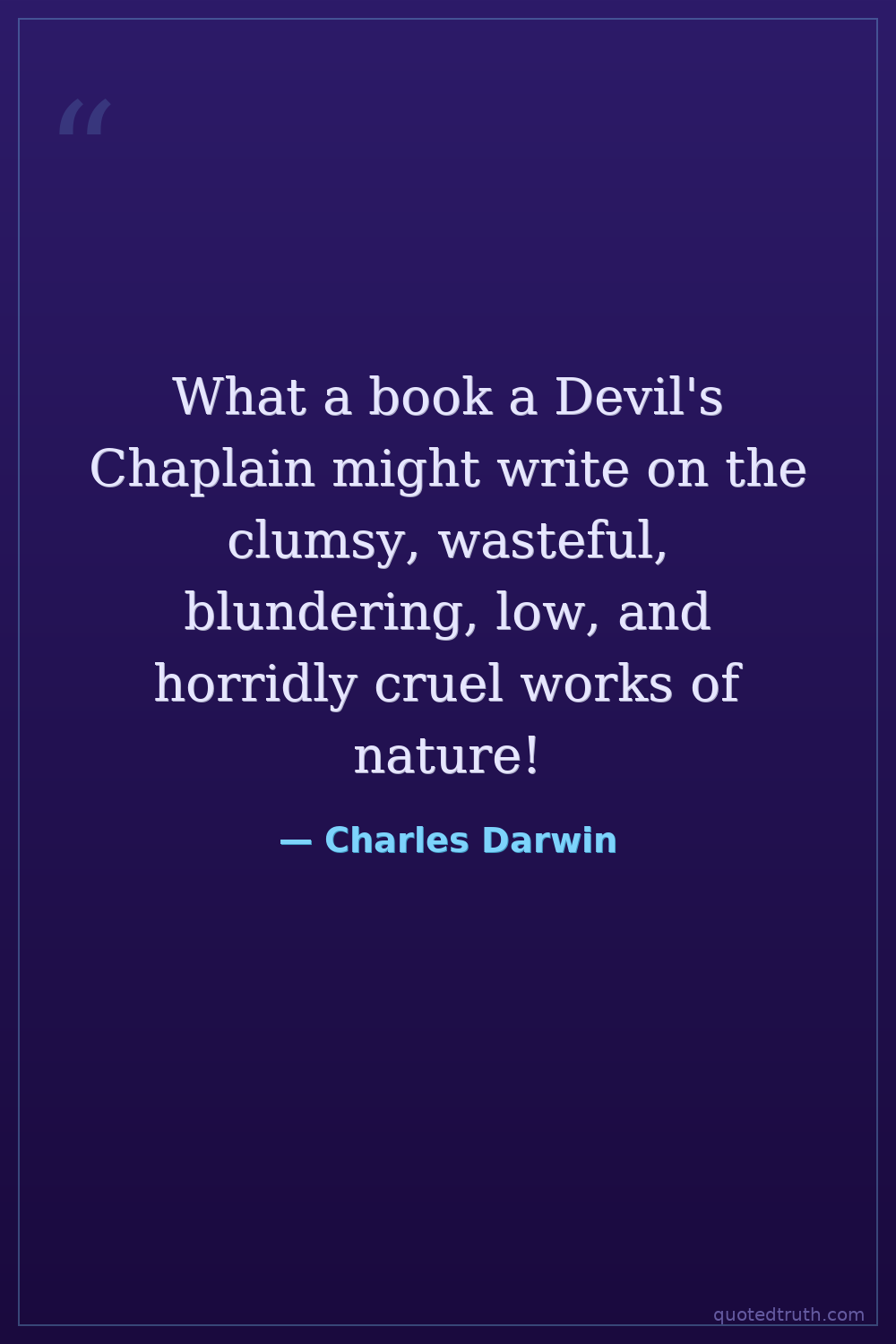 What a book a Devil's Chaplain might write on the clumsy, wasteful, blundering, low, and horridly cruel works of nature!